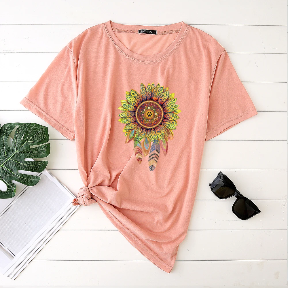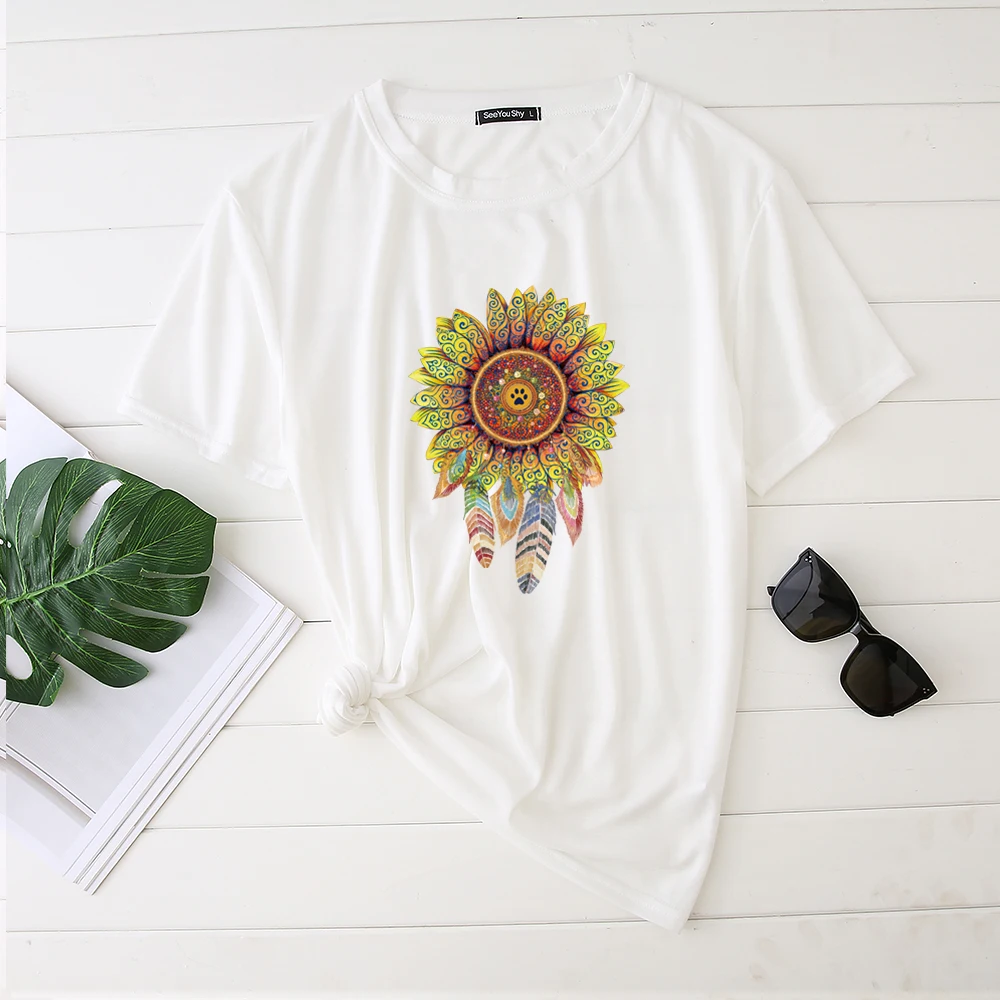 PatternColorful Flowers Printed Woman Tshirts