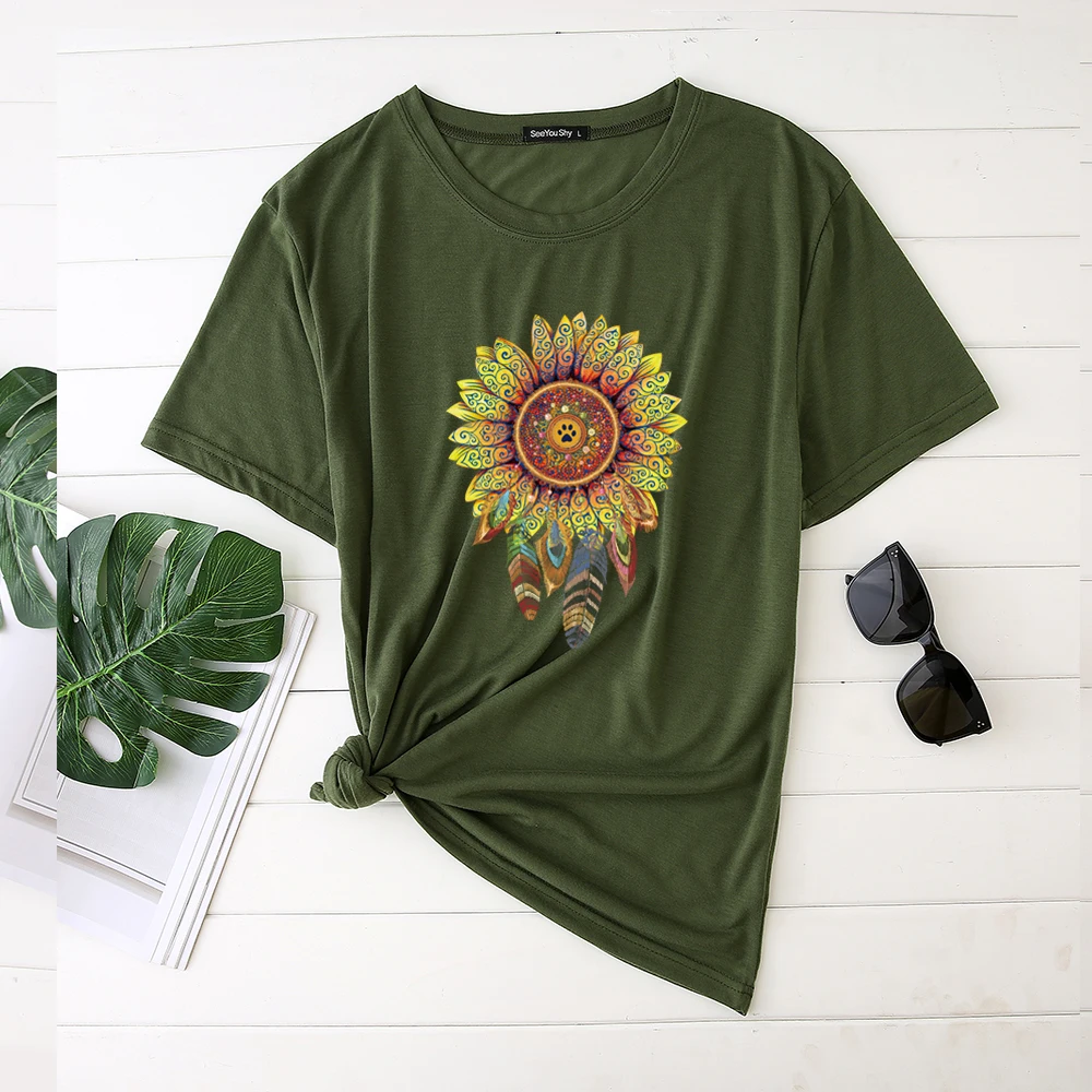 Футболка женская с цветочным принтом, Повседневная рубашка с коротким рукавом, с графическим принтом, в эстетическом стиле, для девочек-подростков