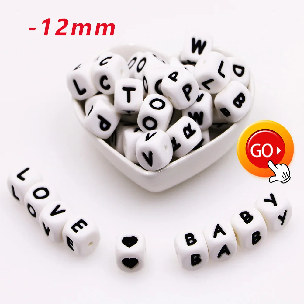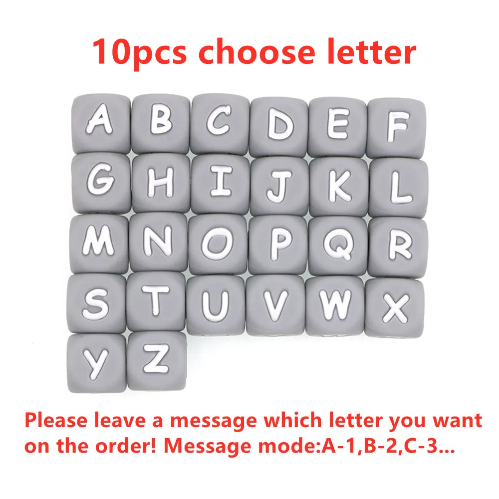 10 шт., силиконовые бусины в виде букв английского алфавита, 12 мм