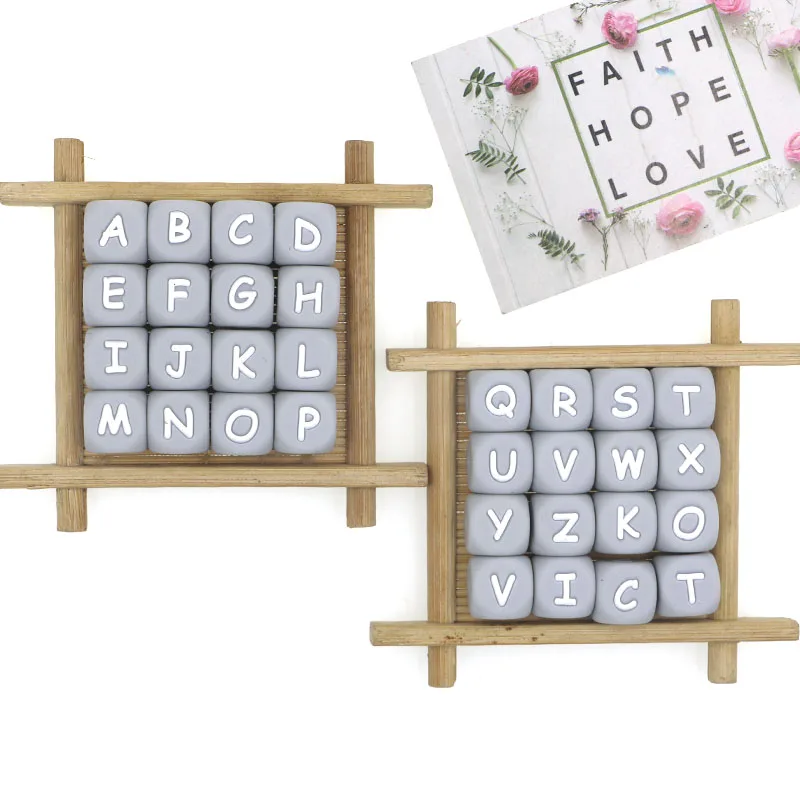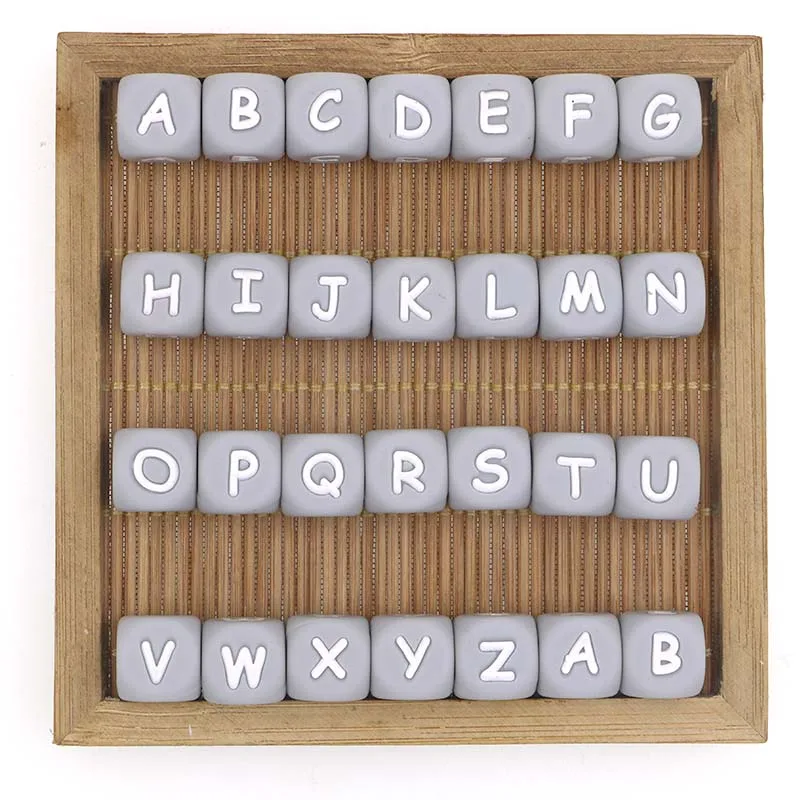 Kovict 10 шт. 12 мм серая силиконовая буква алфавита бисер ребенок прорезывание зубов соски цепь Силиконовые Дети прорезыватель BPA бесплатно
