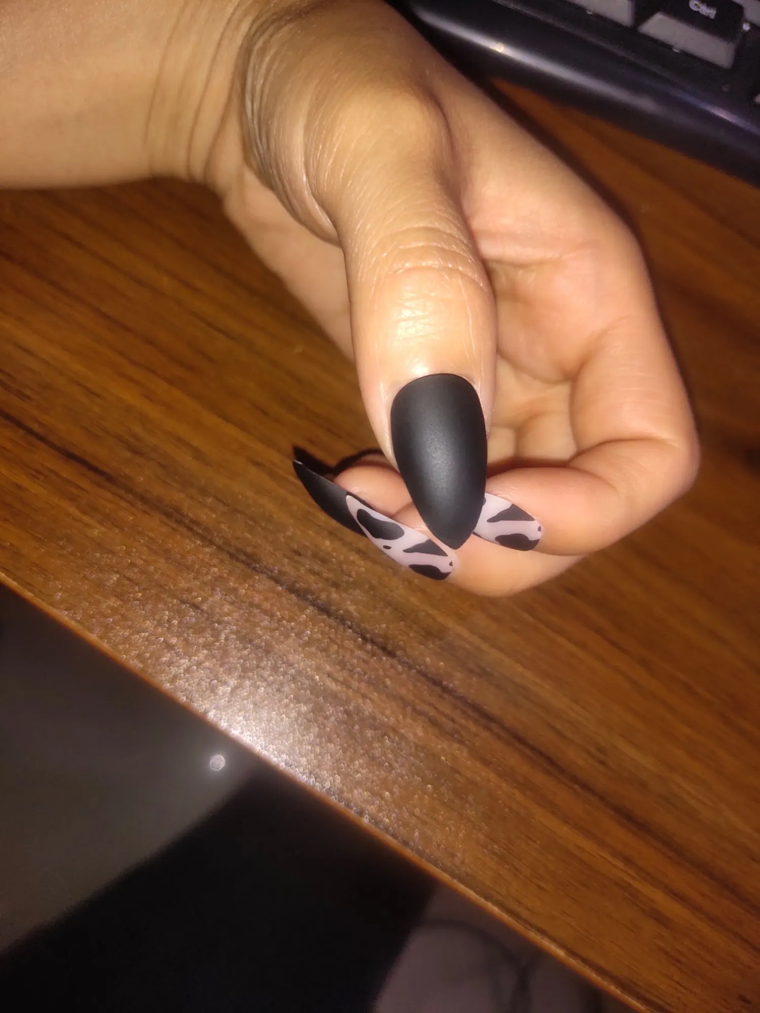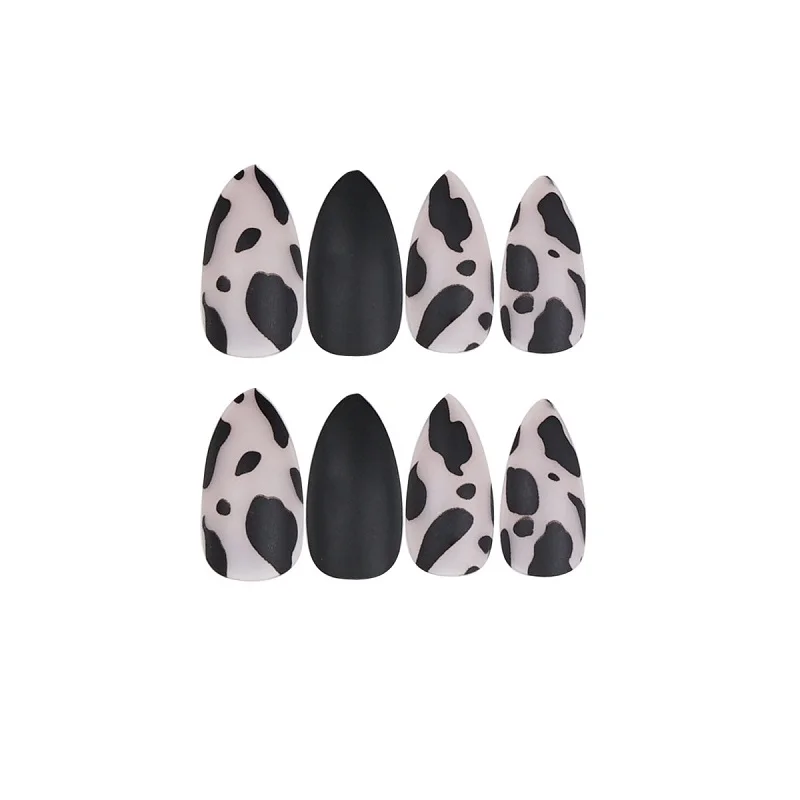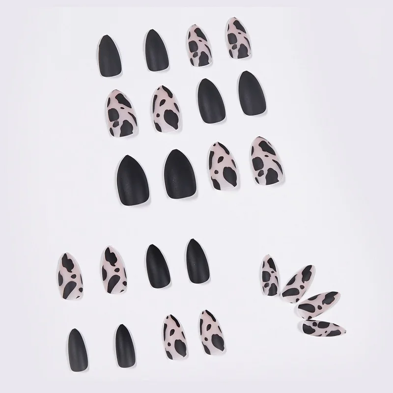GAM-BELLE 24 шт миндалевидные матовые черные леопардовые накладные ногти нажмите на Дизайн полное покрытие французские накладные ногти с клеем