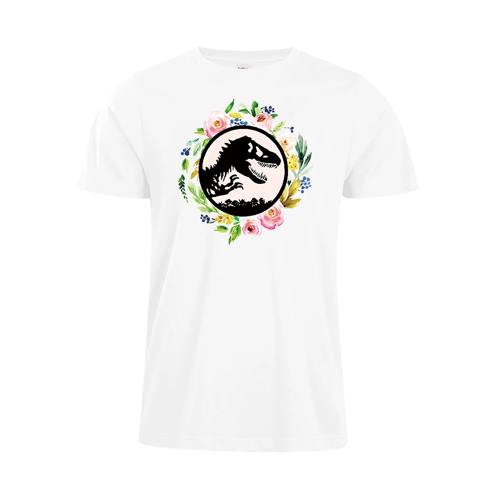 Новинка, футболка для парка Юрского периода, женская футболка с цветочным рисунком динозавра, женская футболка унисекс с цветочным рисунком Юрского периода