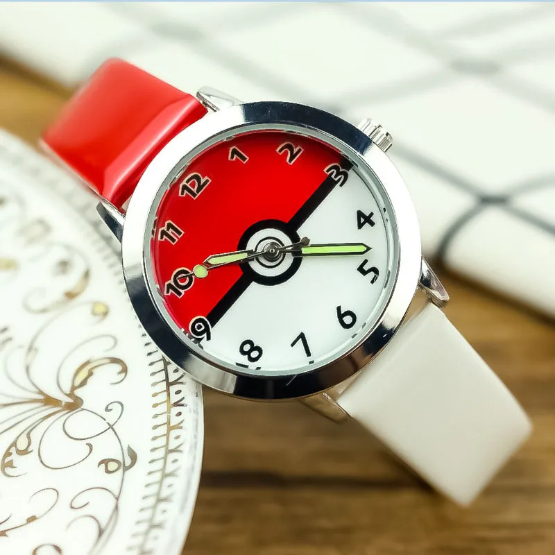 Покемон Пикачу детские часы мультфильм аниме фигурка покебол PU рем...