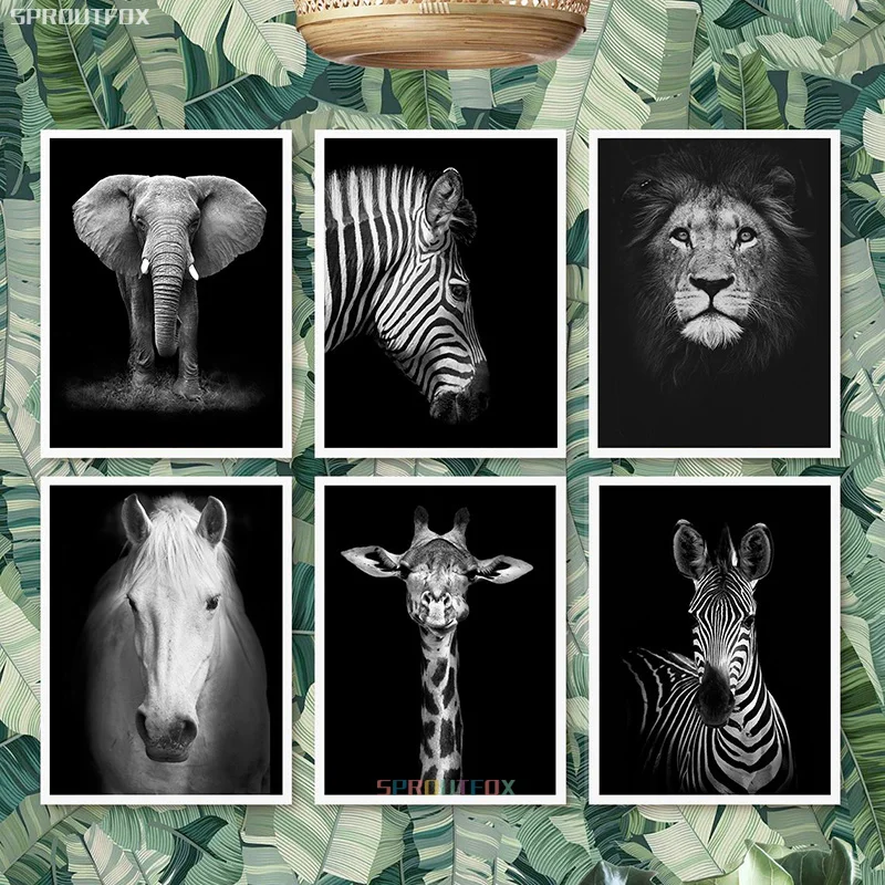 постеры в гостинную постеры на стену Черно-белые настенные плакаты и принты животных для гостиной, гостиной, Декоративные плакаты и принты для спальни