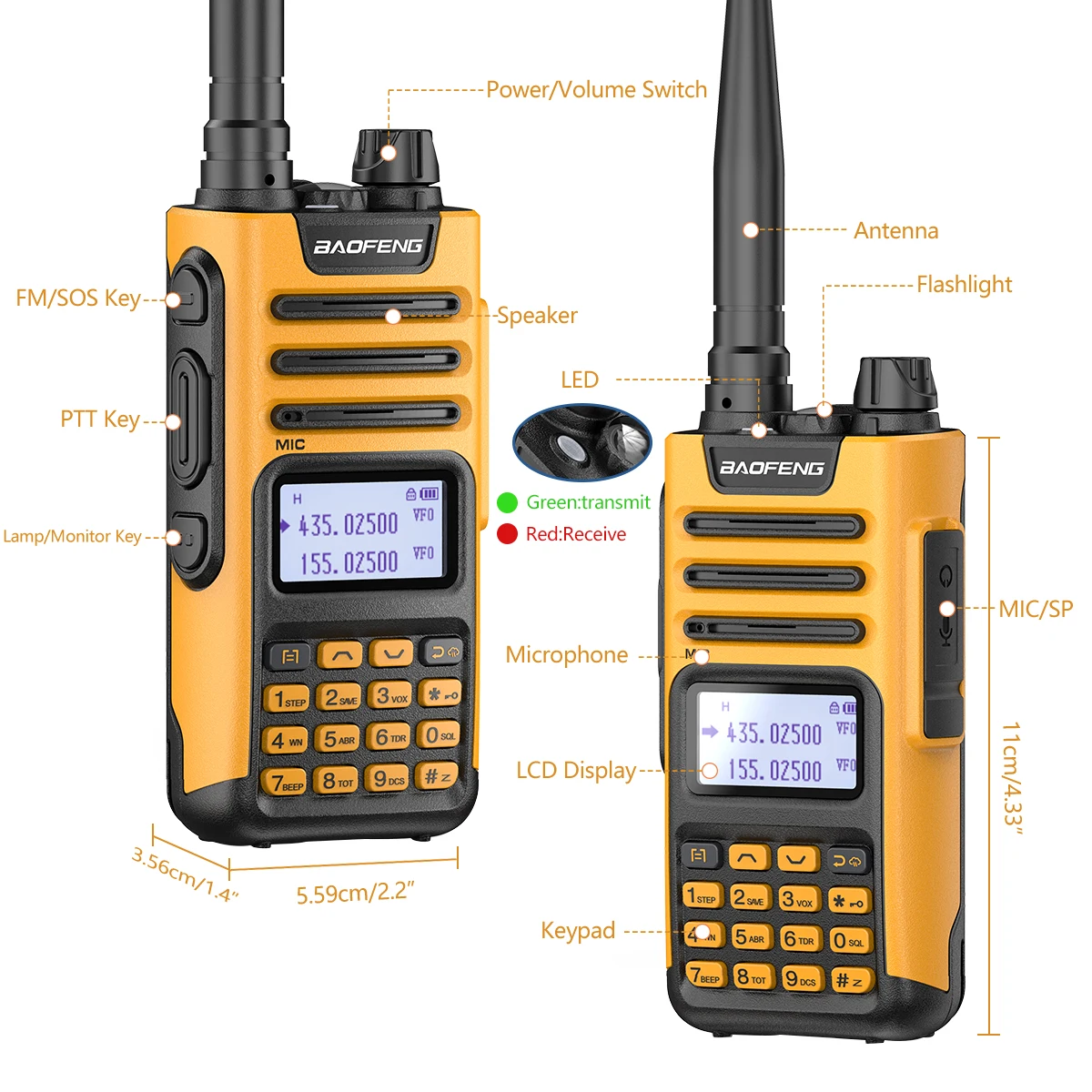 999 каналов памяти; CTCSS/DCS; VOX режим для Hands-Free; A/B Группа независимая работа; Два диапазона; Двойной дисплей; Двойной режим ожидания авто блокировка клавиатуры.