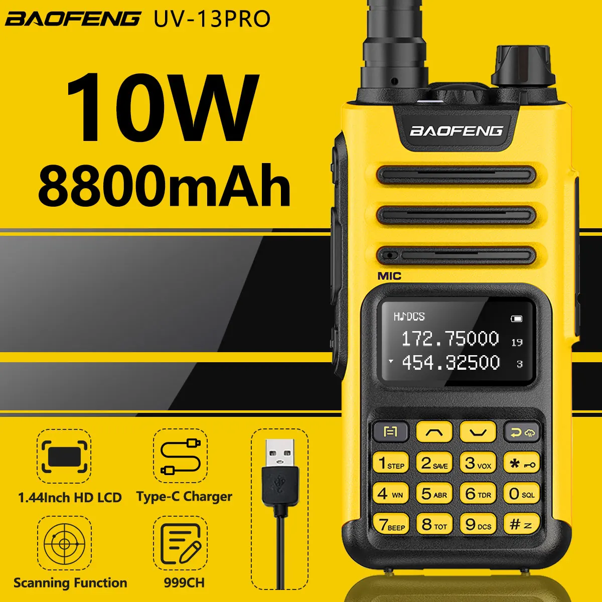Baofeng UV-13 PRO Walkie Talkie 10 Вт Высокая мощность 999 каналов двухдиапазонный UHF VHF радио передатчик USB зарядное устройство UV-5R двухстороннее радио