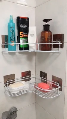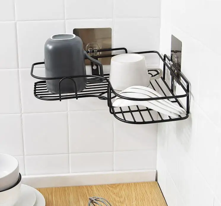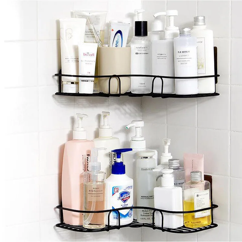 Металлический угловой стеллаж для хранения без гвоздей, двухуровневый стеллаж для хранения аксессуаров для ванной и кухни, стеллаж для хранения шампуня, для гостиной, спальни