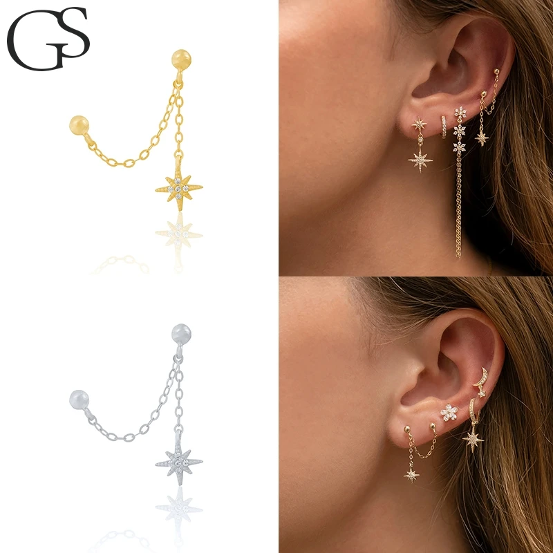 Серьги-гвоздики GS из настоящего серебра 925 пробы с подвеской в виде звезды, из стерлингового серебра S925 пробы, роскошные серьги в стиле бохо