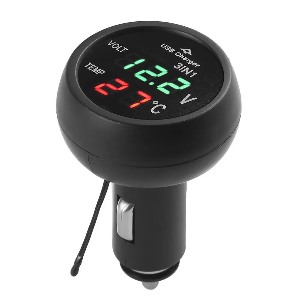 1x3 в 1 Автомобильный светодиодный цифровой вольтметр датчик + термометр + USB зарядное устройство