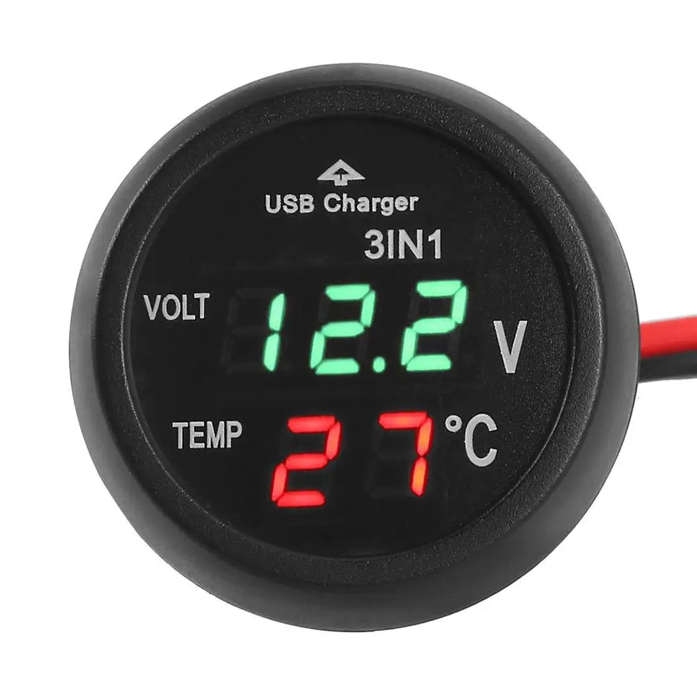 Универсальный Автомобильный цифровой вольтметр 3 в 1 1224 в, светодиодный измеритель напряжения, термометр, USB зарядное устройство