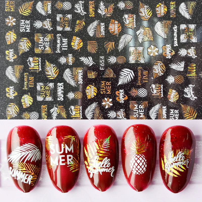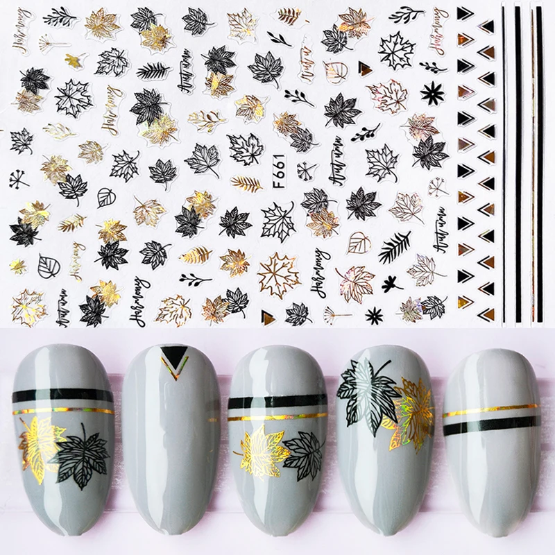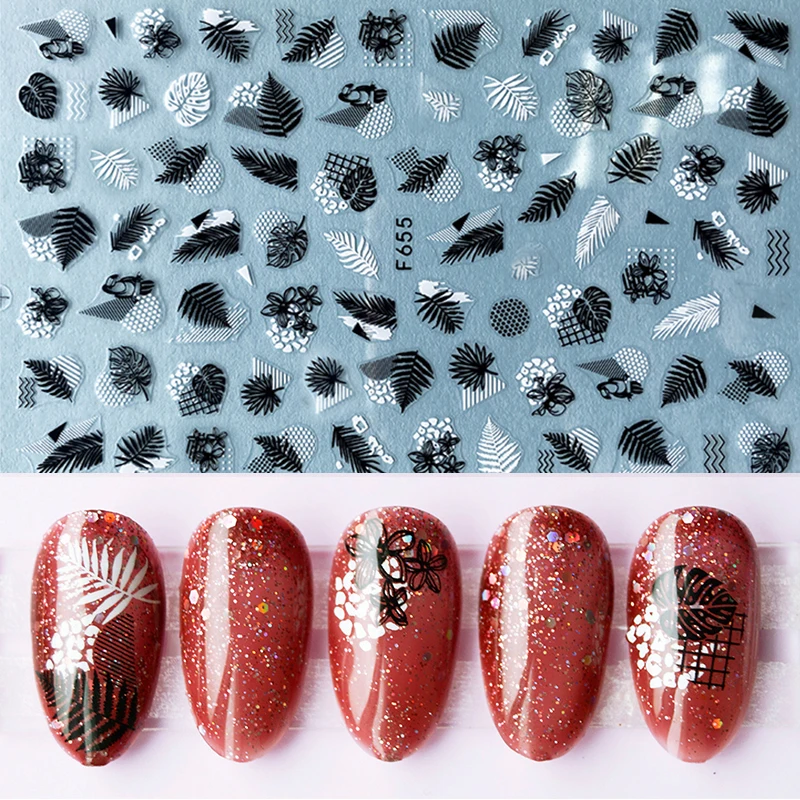 3D наклейки для ногтей с листьями из черного золота, 1 шт., узор с листьями кокоса, клейкие переводные наклейки, блестящие украшения для ногтей своими руками