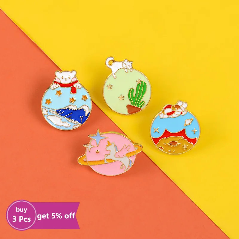 Animal Planet эмали штырь пользовательские красочные брошь "Космос" рубашка с лацканами сумка с рисунком кота из мультфильма значок медведь, ювелирное изделие в подарок для детей