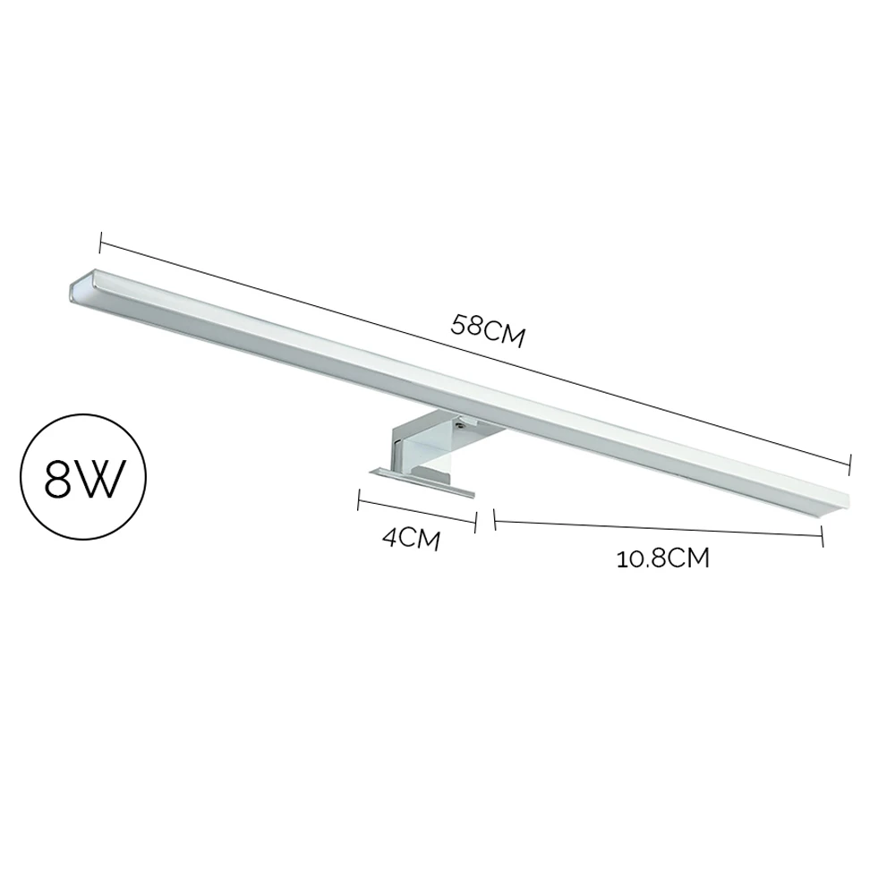 Этот светодиодный светильник-зеркало подходит для ванной комнаты, туалета, косметического стола, как зеркальный светильник ing. Простой и стильный дизайн показывает современную и элегантную функцию, идеально подходящую для вашей ванной комнаты и стиля шкафа. Это незаменимая лампа.