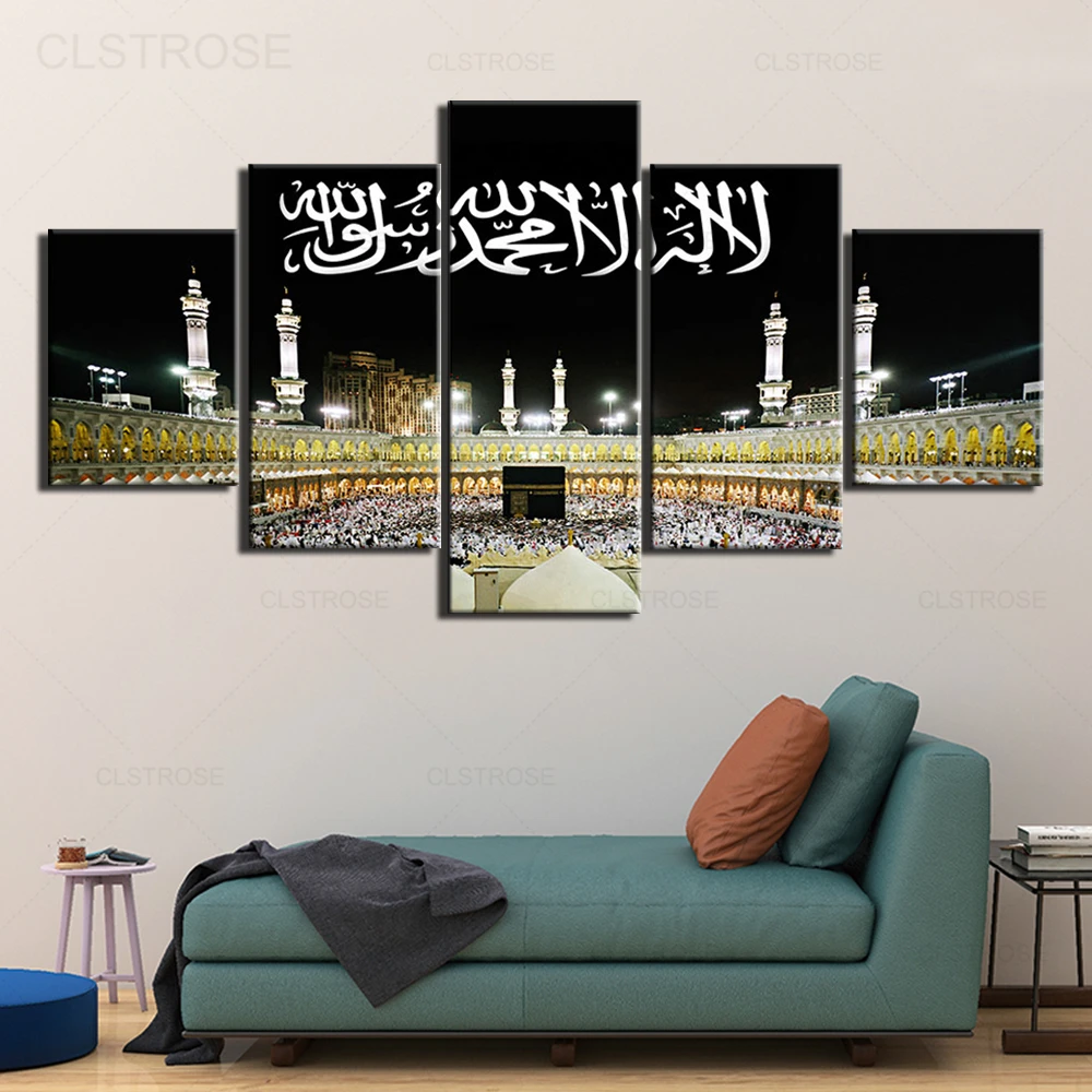 Настенная картина с пятью панелями, исламский девиз, Картина на холсте, девиз Кореи, мечеть, скандинавский абстрактный постер, домашний декор, гостиная