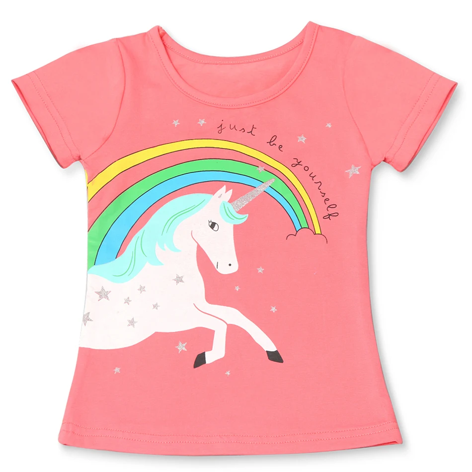 Цвет: белый, черный, розовый размер: 90-100-110-120-130-140 возраст: От 2 до 7 лет Материал: смесь хлопка, полиэстер, другая тема: мультфильм, единорог, лето, пляж, подарок на день рождения