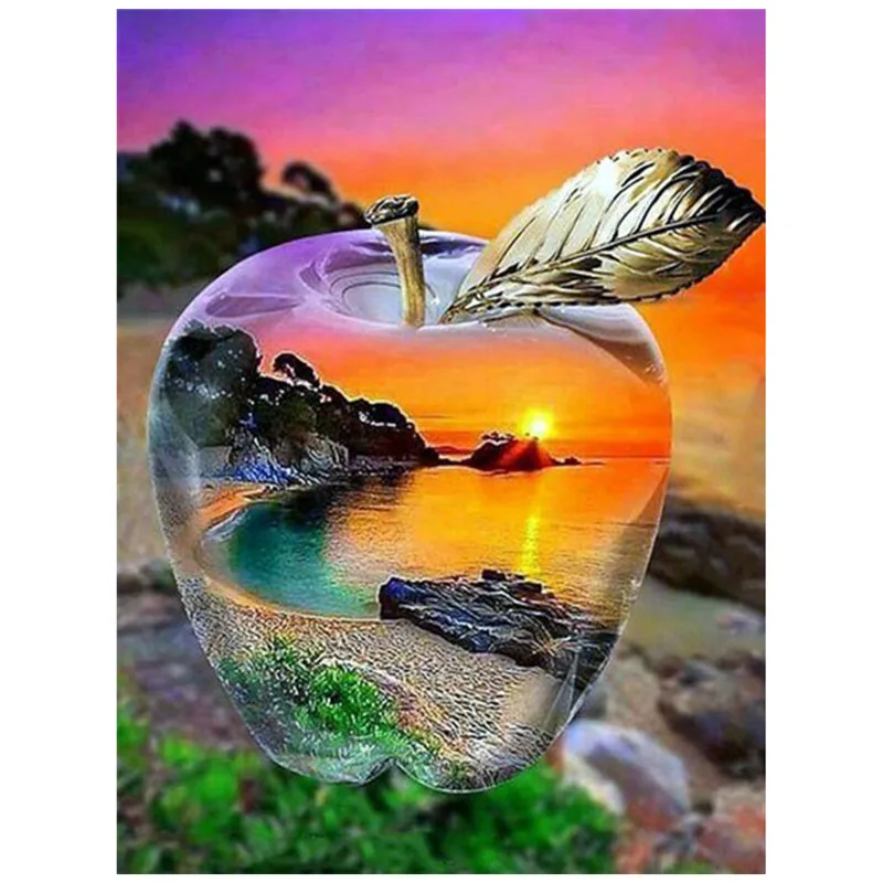 Алмазная 5D картина сделай сам, полноразмернаякруглая вышивка с пейзажем в яблоке, ручная работа, украшение для дома, мозаика, творческое искусство