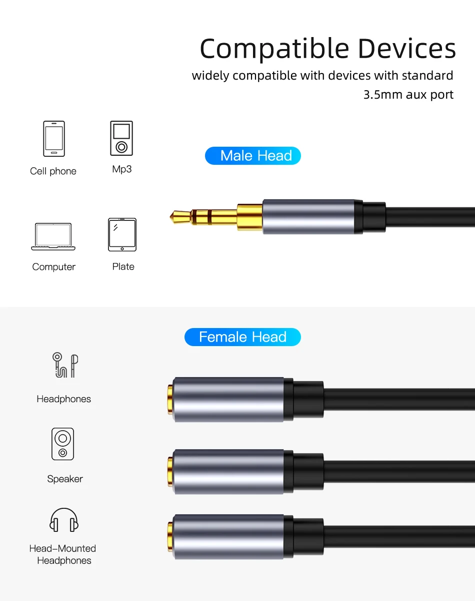 Аудио-разветвитель, аудиокабель 3,5 мм, 3 разъема Мама-папа, 3,5 мм, сплиттер, адаптер, Aux-кабель для iPhone, Samsung, MP3-плеера, наушников