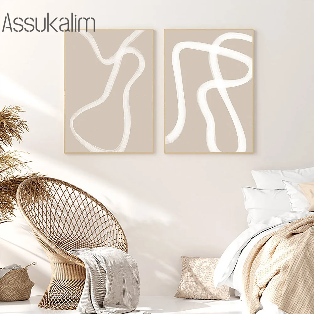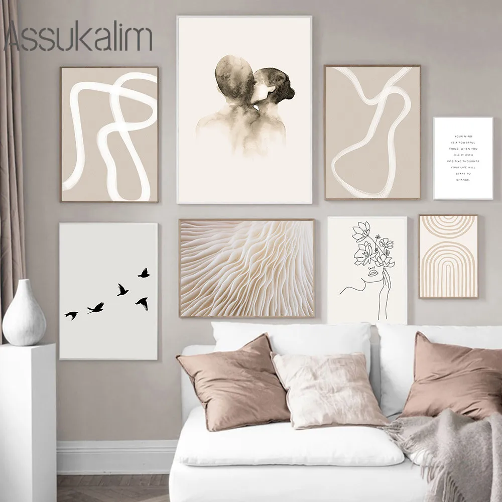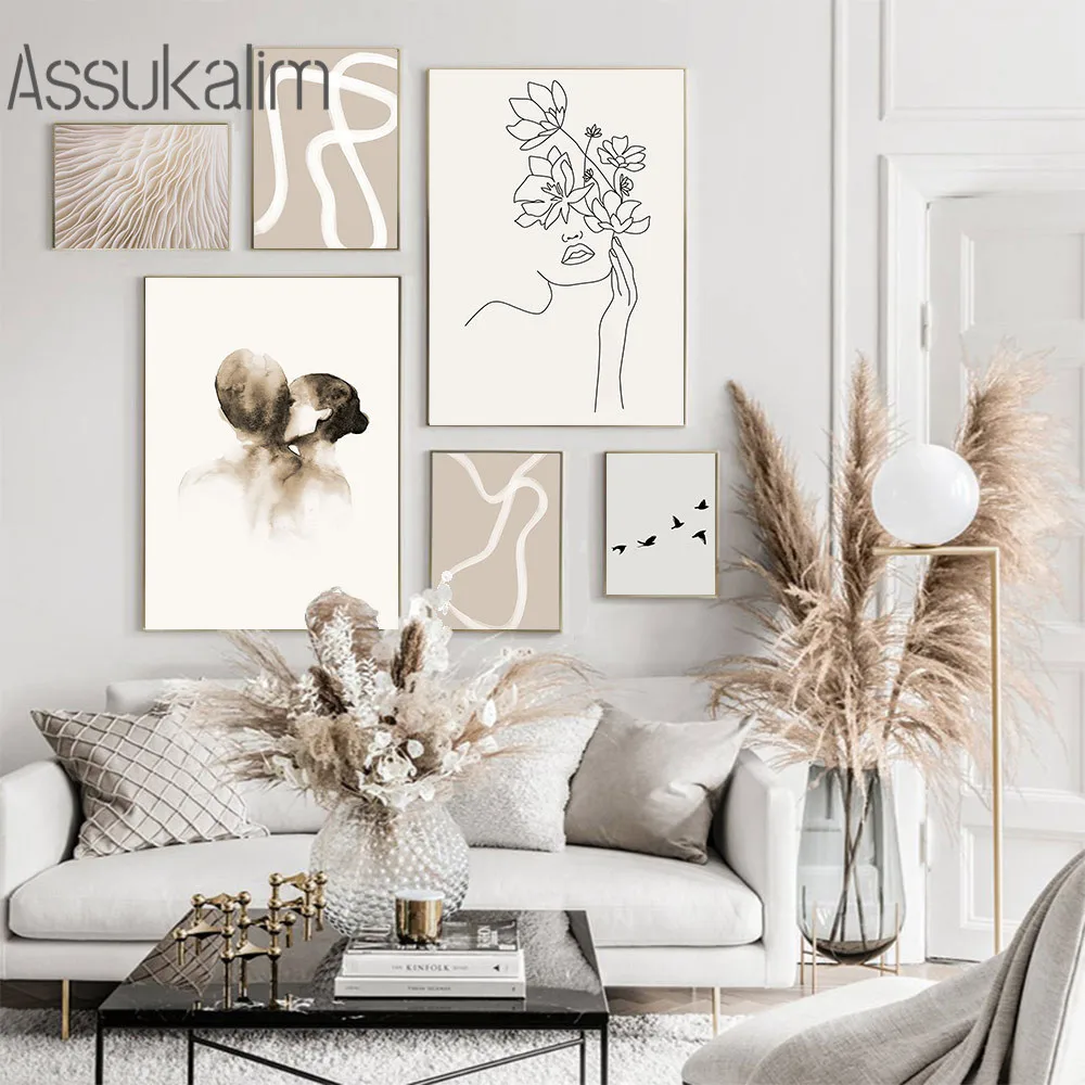 Настенная Абстрактная живопись, Постер в стиле бохо с рисунком линий и грибов, постеры для пар, настенные картины в скандинавском стиле, украшение для гостиной
