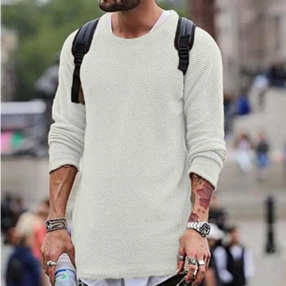Мужской повседневный Однотонный свитер, трикотажная рубашка с круглым вырезом и длинным рукавом, пуловер, Топ