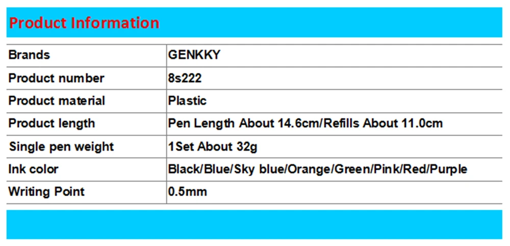 Ink ColorsBlack,Navy Blue,Red,Purple,Sky blue,Orange,Pink