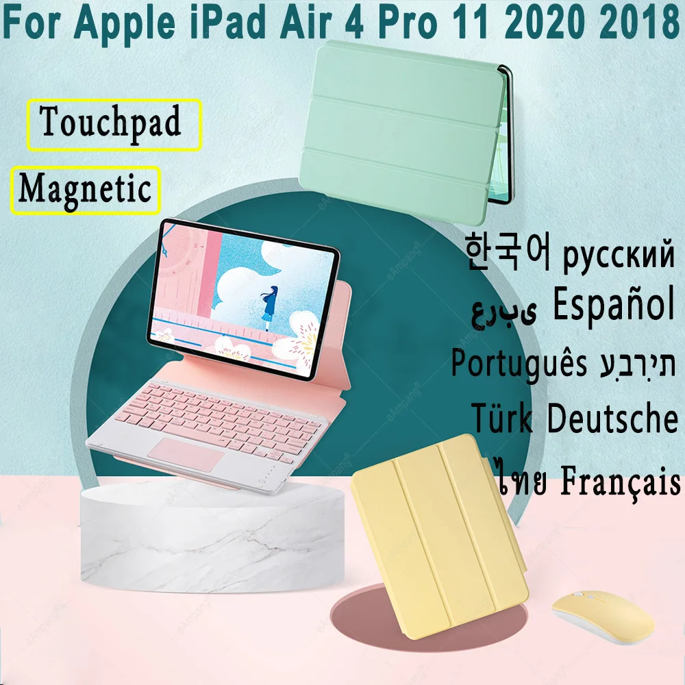 Корейский испанский Магнитный чехол с клавиатурой для iPad Air 4 4th Pro 11 2021 2020 2-й чехол с беспроводной сенсорной панелью клавиатуры трекпад