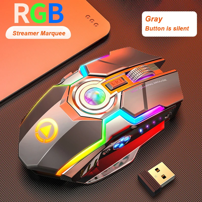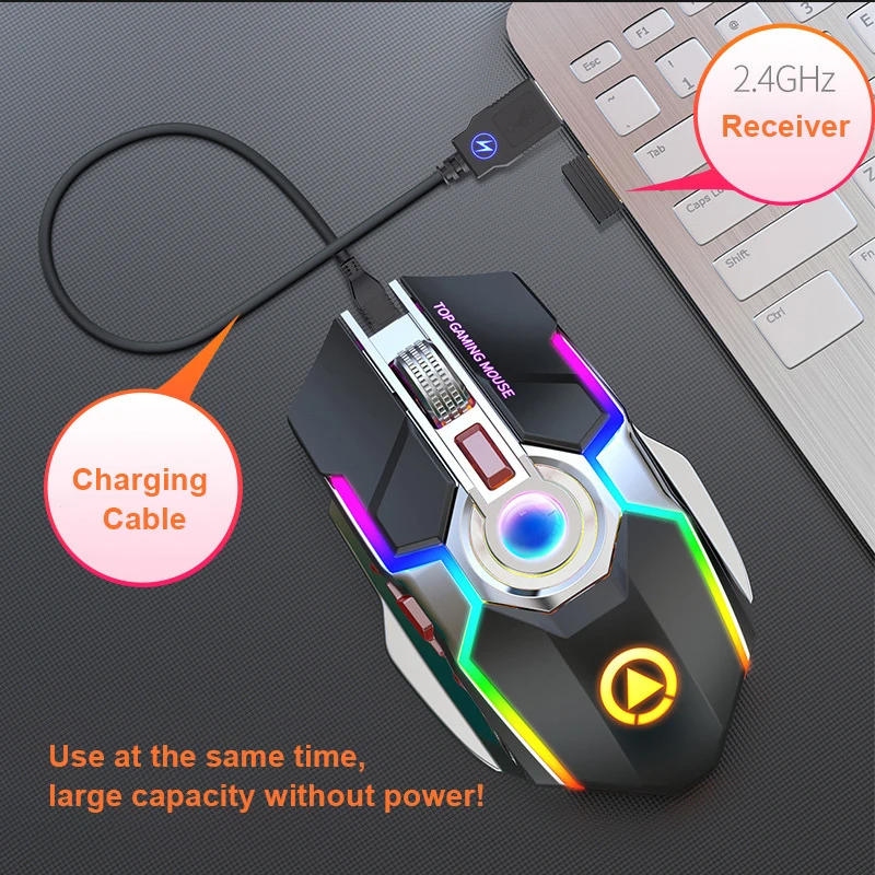 Мышь игровая беспроводная, 7 кнопок, 1600 DPI, с подсветильник кой RGB, USB