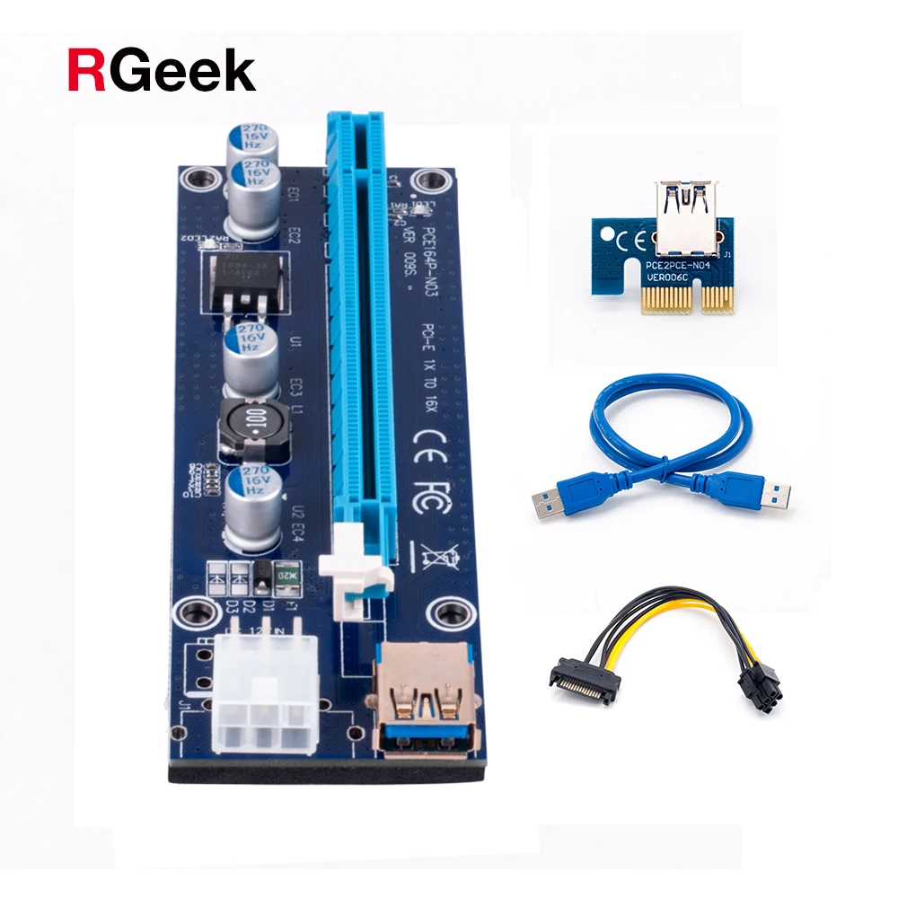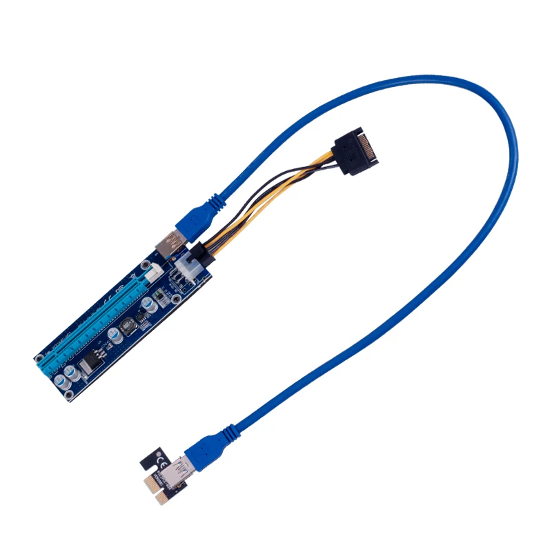 1 * PCI-E 16X подъемная плата,1 * Адаптер PCI-E 1X,1*60 см USB 3,0 кабель,1 * SATA 15 Pin на 6 Pin Molex кабель питания