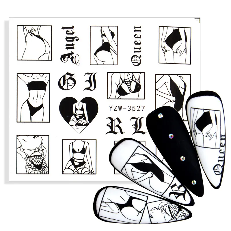 Самоклеящиеся наклейки для ногтей, черные, сексуальные, с 3d-изобра...