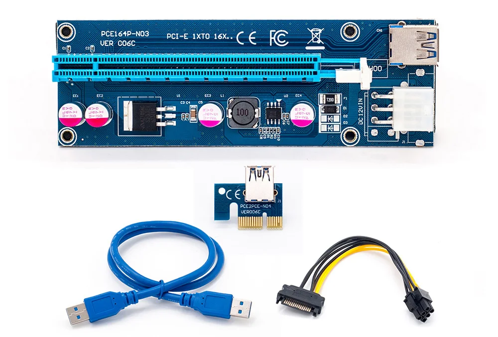 1 * PCI-E 16X подъемная плата,1 * Адаптер PCI-E 1X,1*60 см USB 3,0 кабель,1 * SATA 15 Pin на 6 Pin Molex кабель питания