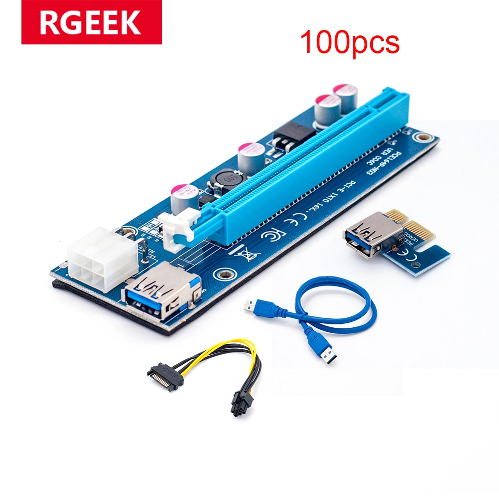 Райзер для графической карты, 100 шт., 006C, PCIe от 1x до 16x, 60 см, кабель USB 3,0, SATA на 6 контактов, для майнинга BTC