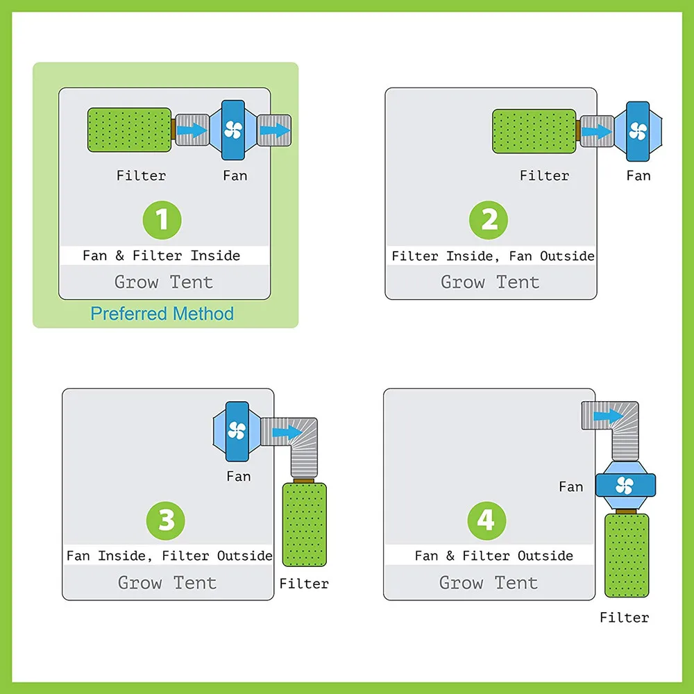 -Воздуховод вентилятор для зеленого дома растут палатки гидропоники X 1-Высокоэффективный активированный карбод воздушный фильтр X 1-Выхлопная труба X 1-Регулируемая Тяжелая веревка-ХРАПОВИК-вешалка X 2-Хомуты для шланга X 2