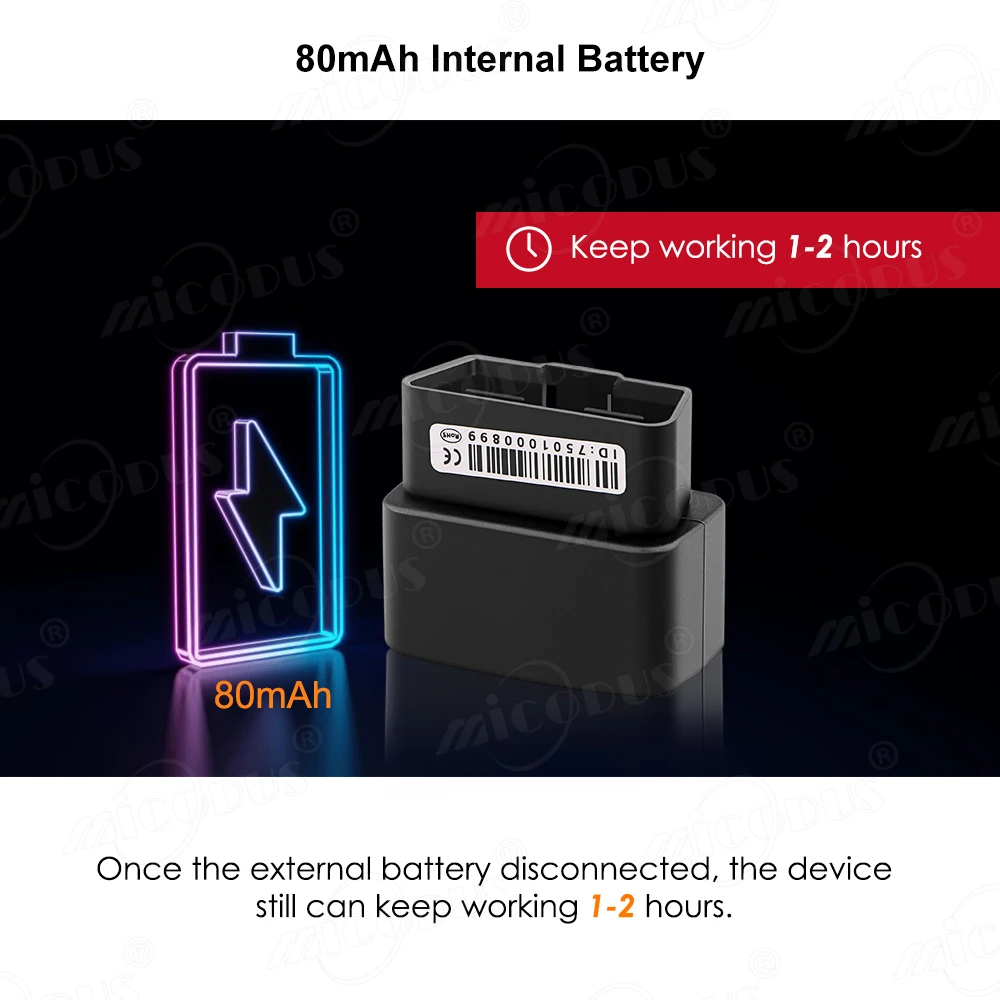 Срок службы бесплатноВеб-сайт: http://www.micodus.net Мобильное приложение: отсканируйте qr-код на изображении и загрузите мобильное приложение, Войдите в систему с идентификатором устройства (наклейкой выше устройства), номером и паролем; (оригинальный пароль: 123456. Вы можете изменить его).