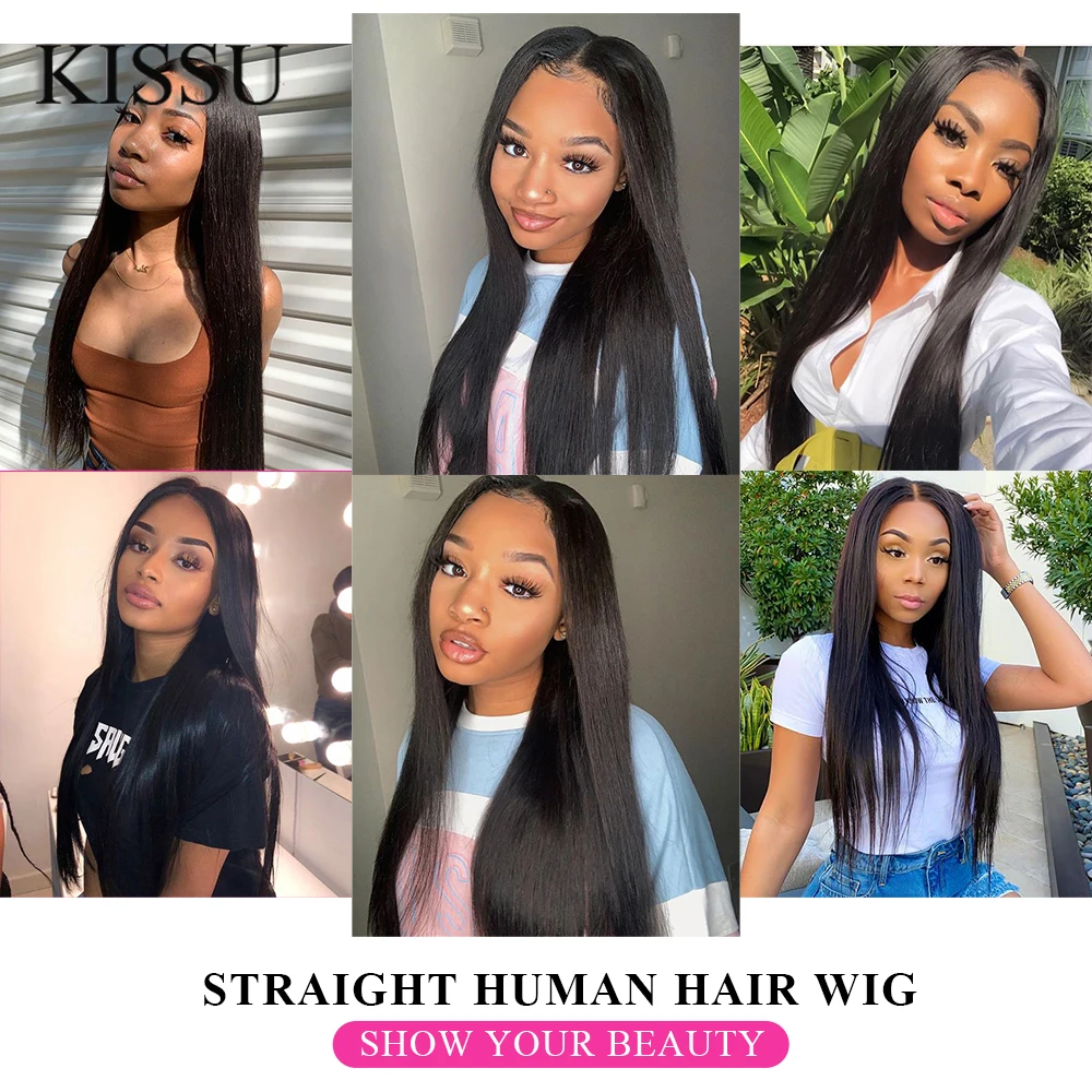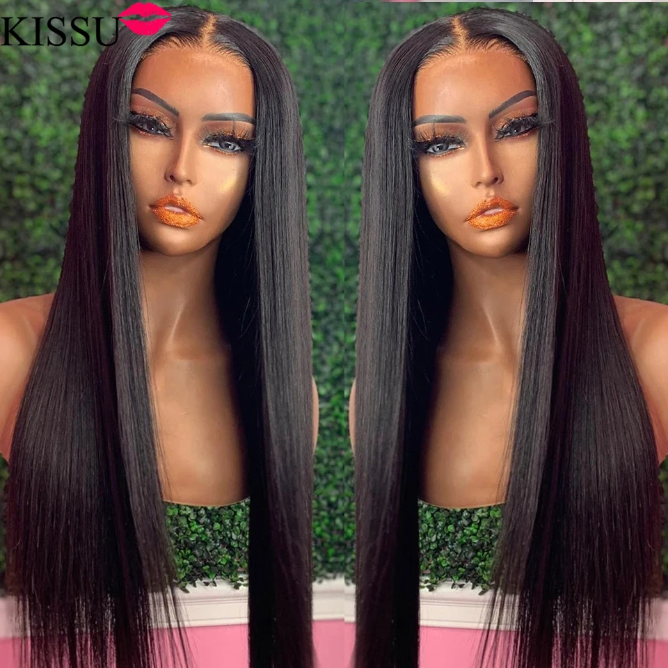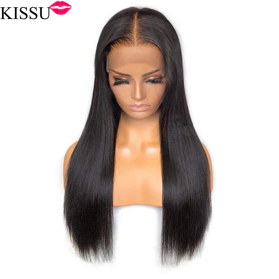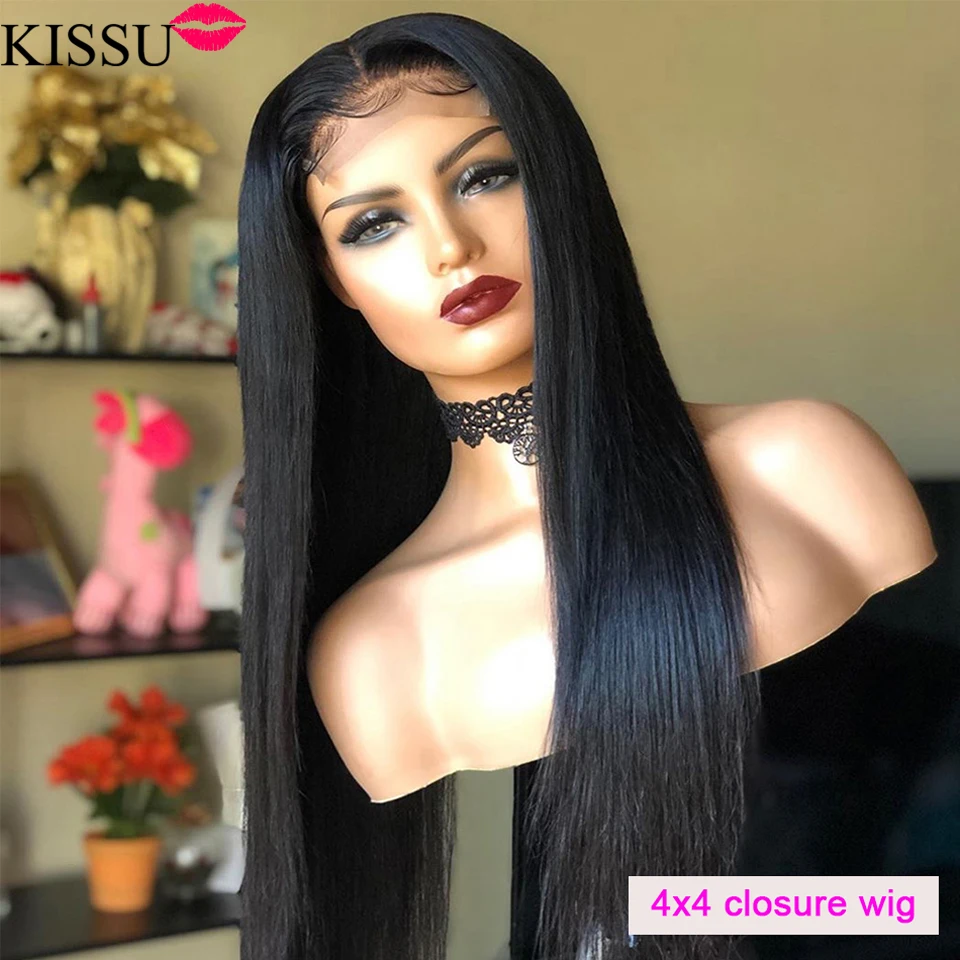 KISSU 30, 32, 34, 36 дюймов, прямой парик с кружевом спереди, 4x4, парик на шнурке, бразильский парик с кружевом спереди, длинные человеческие волосы, парики для женщин