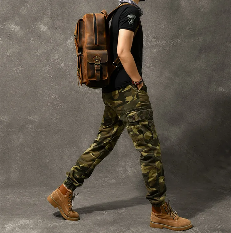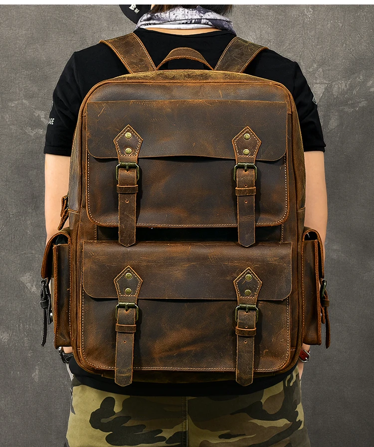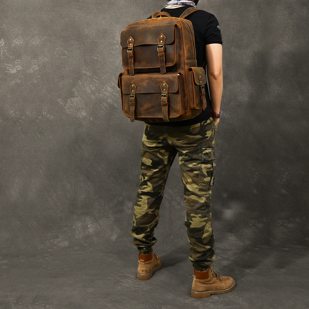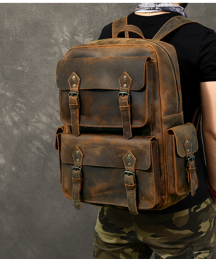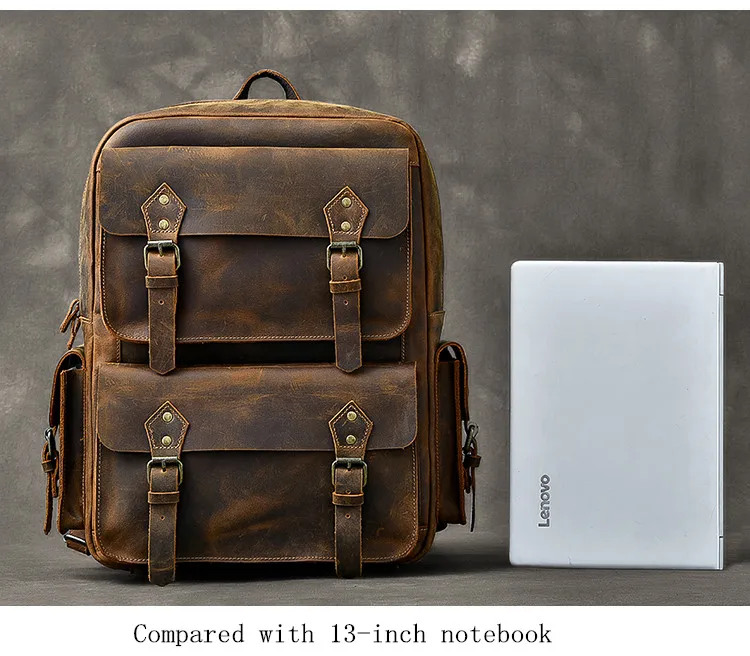 Мужской кожаный рюкзак, большой объем, для компьютера, в стиле ретро, для путешествий