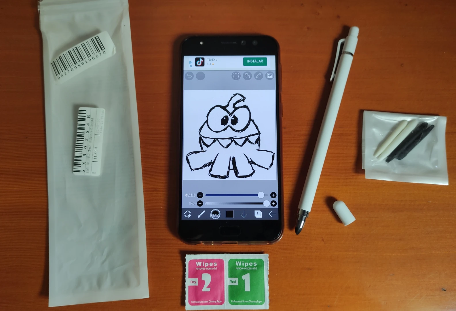 Довольно потрясающий емкостный стилус (не активен, не ожидайте чувствительности к давлению, отклонения ладони и т. д.). Удобная длина, вес и размер пера для рисования гораздо более точно, чем с пальцем. Я пробовал его в течение нескольких часов в Asus ZD552KL с помощью краски Ибис. Я должен был попробовать каждый наконечник в упаковке, чтобы узнать, какие из них работают с Android. Затем наконечник замачивал спирт и устанавливал промежуточный контакт, но через 10 минут он стабилизируется и является довольно простым.