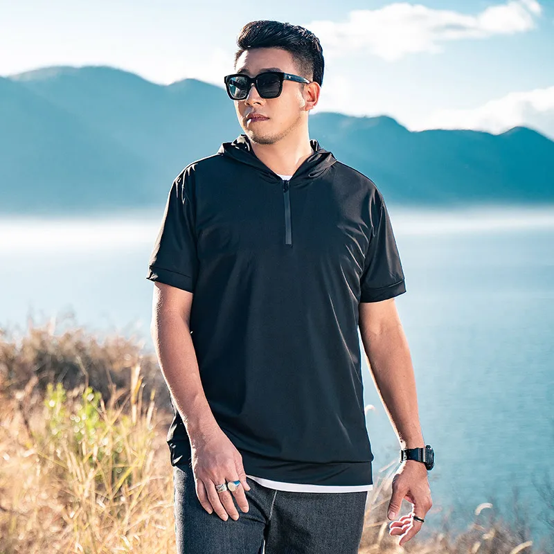 Футболка GXXH мужская с капюшоном, модная дизайнерская рубашка в Корейском стиле джентльменов, тонкая нейлоновая кофта на молнии, большие размеры 7XL, на лето