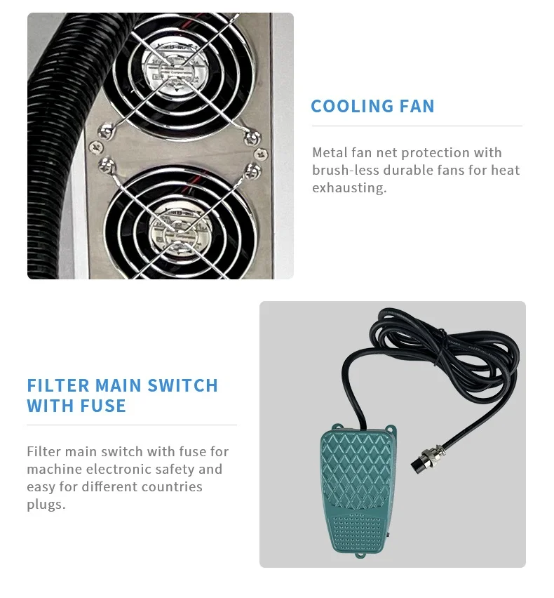 Прочная защитная труба для волоконного кабеляПрочный и прочный ножной переключательГлавный выключатель фильтра с предохранителем для электронной безопасности машины и легко для штепсельных вилок разных стран.Металлическая сетчатая защита вентилятора с бесщеточными долговечными вентиляторами для отвода тепла.