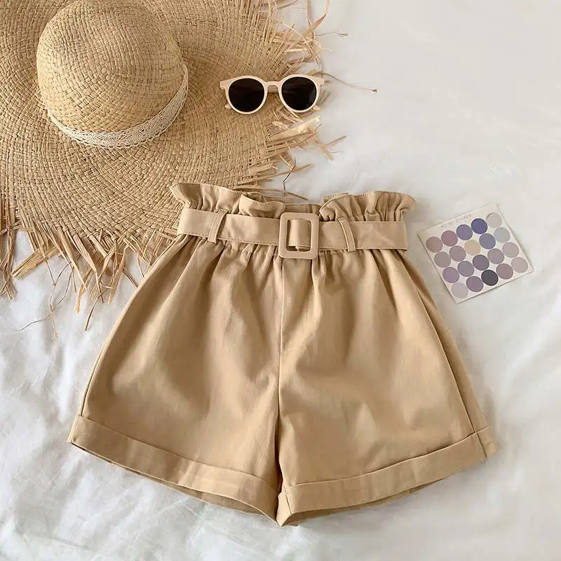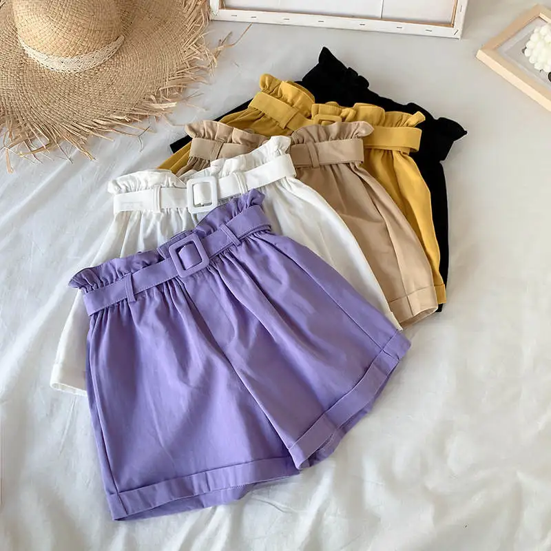 2021 летние однотонные Цвет повседневные широкие шорты с высокой талией для женщин с поясом размера плюс свободные пляжные больших размеров, женские шорты C7095