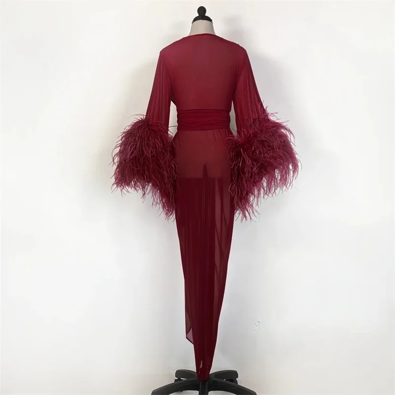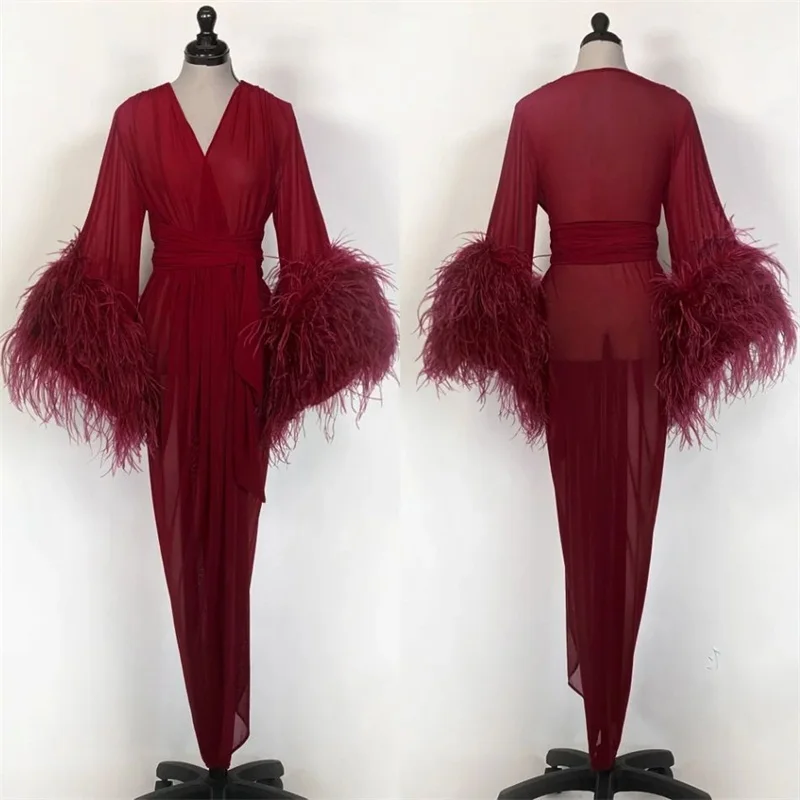 Роскошные перо Свадебная Пижама с рюшами из шифона Лидер продаж длинная ночная рубашка для женщин с длинным рукавом индивидуальный заказ женская пижама