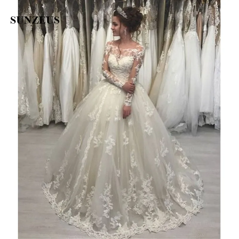 Кружевные свадебные платья с длинным рукавом, бальное платье цвета слоновой кости, современные свадебные платья принцессы, 2021 robe de mariage