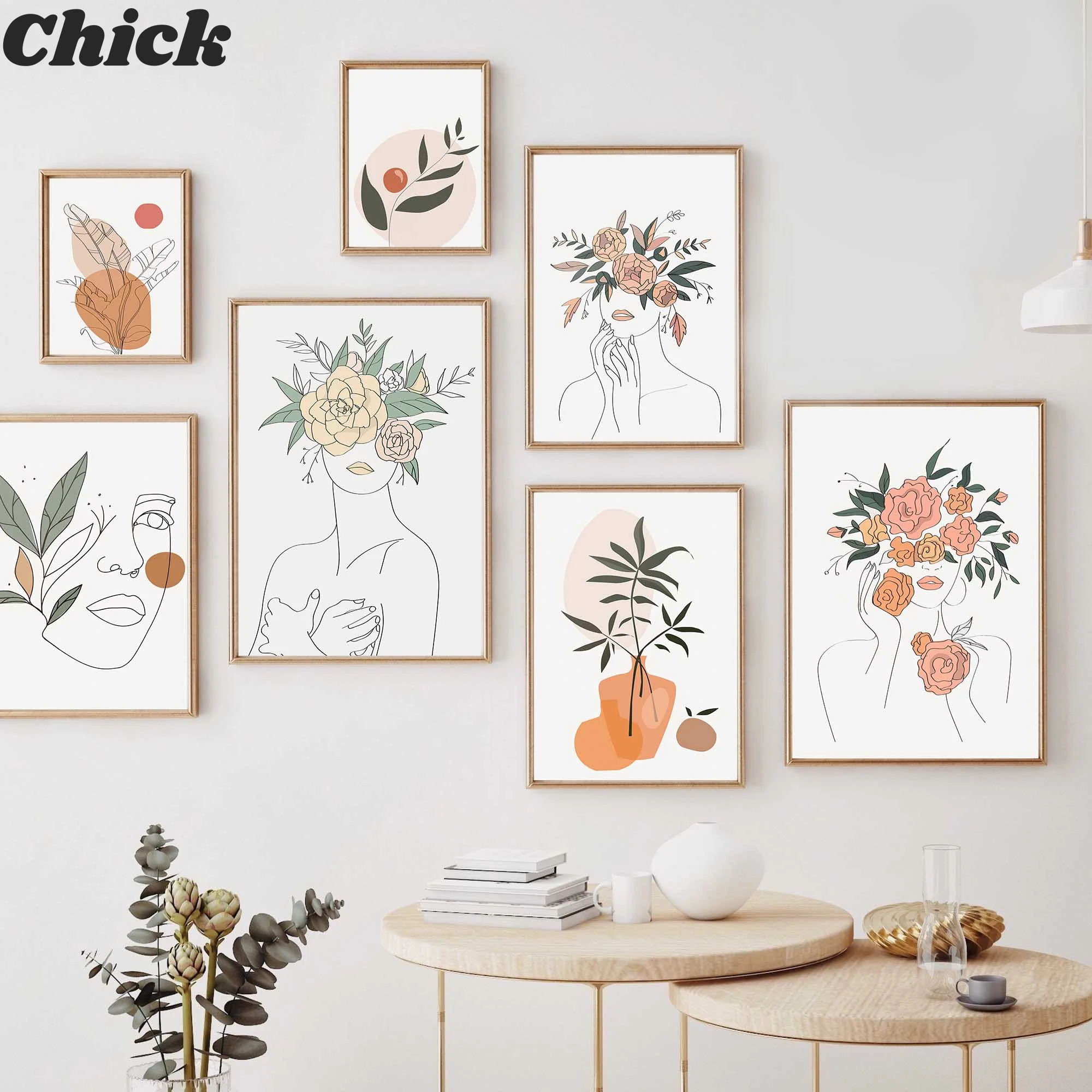 Абстрактная линия тела лист растений планшетов и принтов Настенная ...
