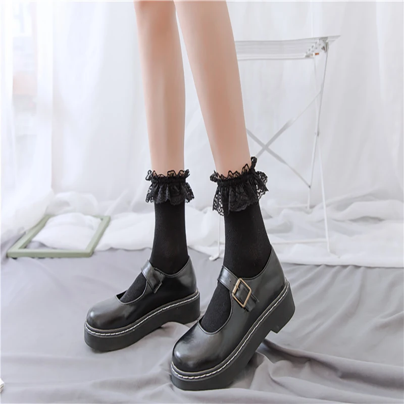 Носки женские, кружевные, хлопковые, в стиле лолита