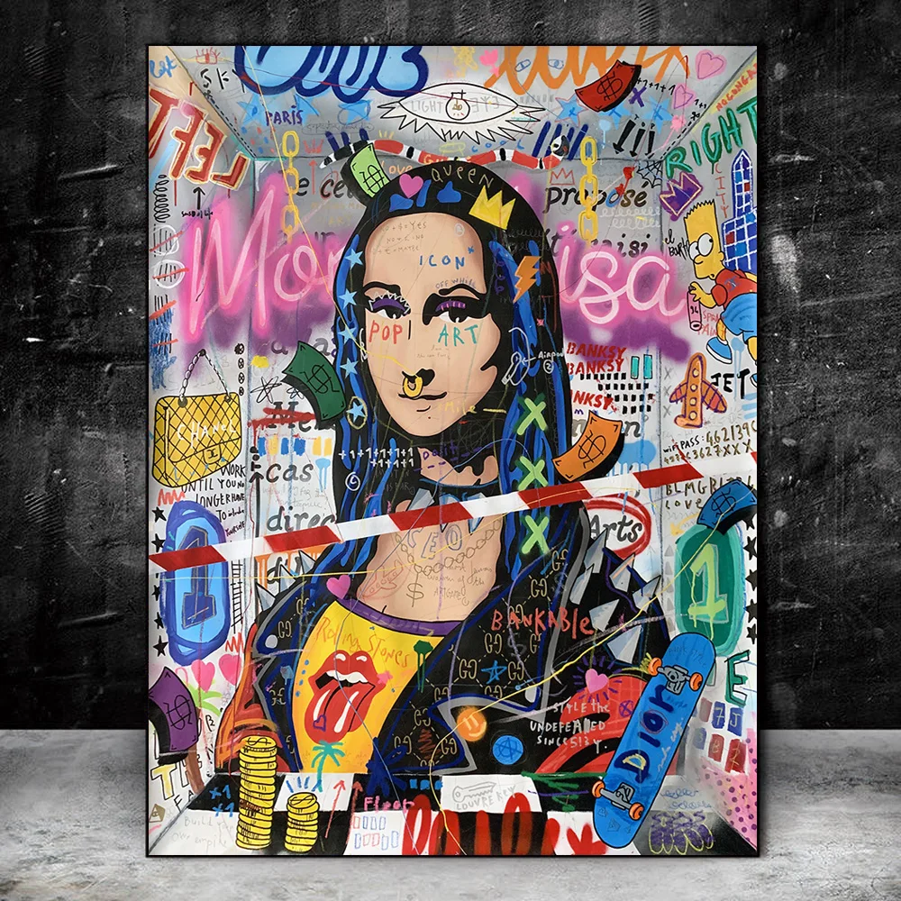 Граффити на холсте Мона Лиза Современная настенные картины художественные плакаты и принты уличное искусство абстрактные картины для гостиной