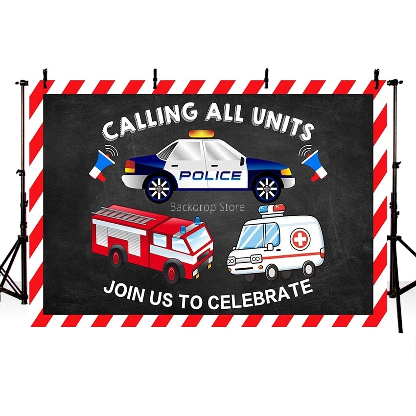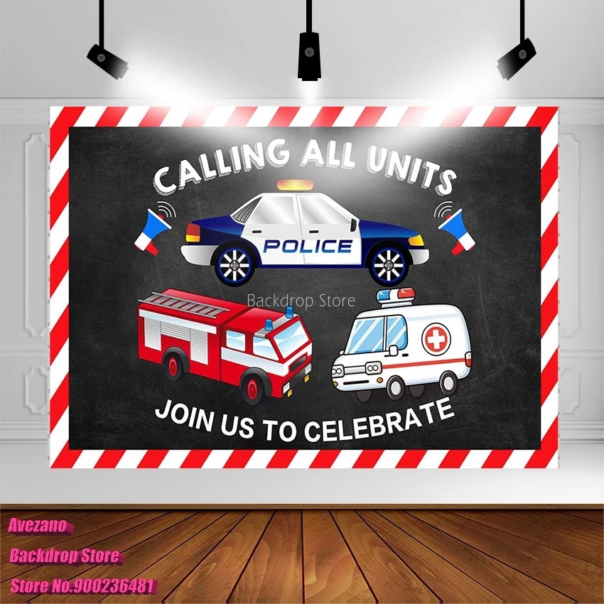 Виниловый фон Avezano для фотосъемки новорожденных с изображением празднования дня рождения полицейской пожарной машины скорой помощи для фотостудии