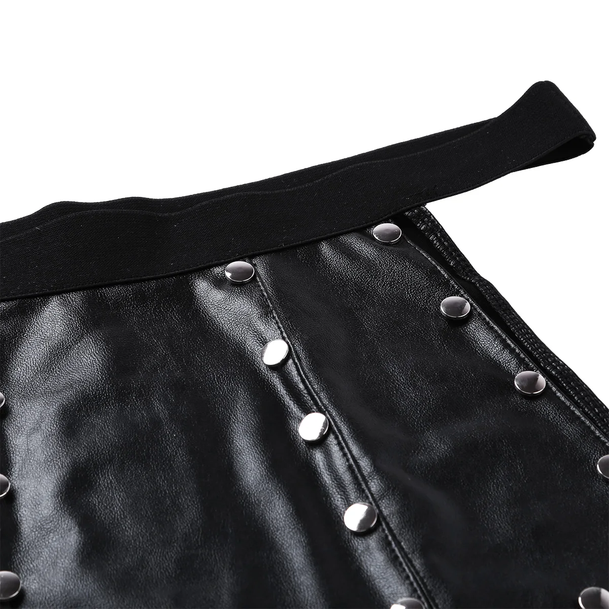 Мужская короткая юбка из искусственной кожи с низкой талией и металлическими заклепками, сексуальное нижнее белье, клубная одежда