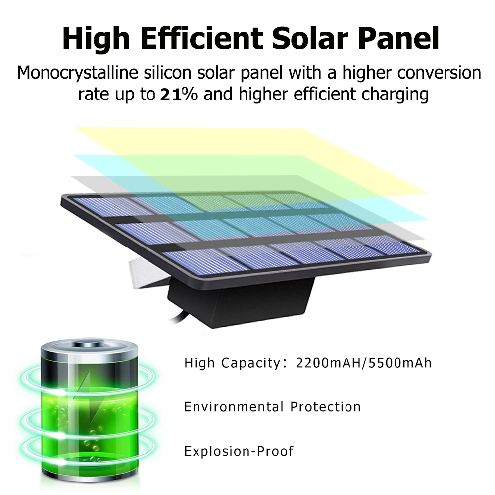 Солнечная панель: 2,8 Вт 5 В Количество СВЕТОДИОДНЫЙ: 80 шт. Светодиодный светильник; Цвет: теплый белый/белый Батарея: 32650 литиевая батарея 3,2 V 5500mah Водонепроницаемость: IP65 Материал абажура: поликарбонат Материал корпуса: PC + ABS Режим работы: автоматически включается светильник в ночное время до выключения питания