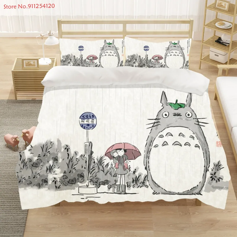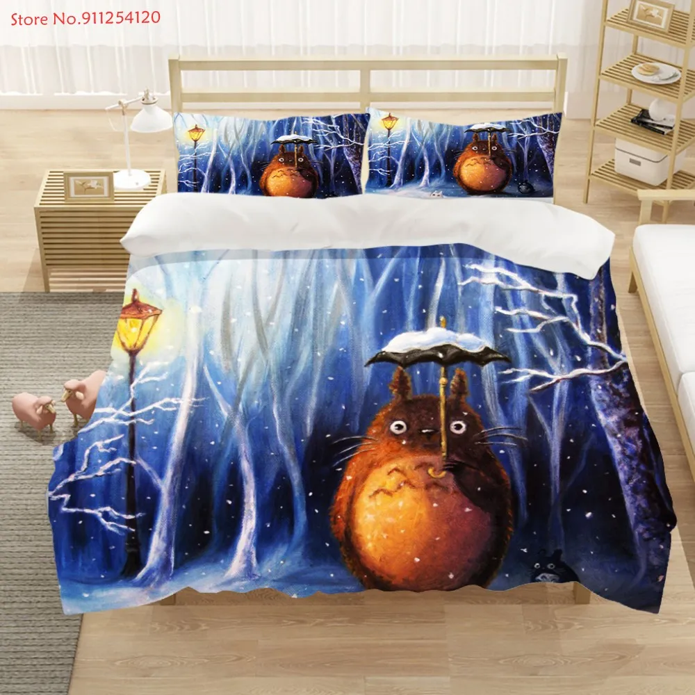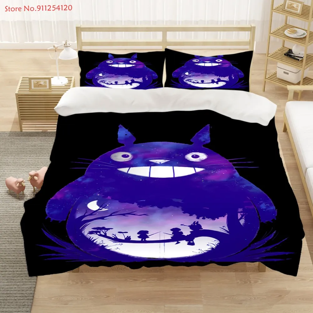 Милое одеяло Тоторо, покрывало 2/3 шт, детская кровать, наволочка, одиночная двойная полная королева, Комплект постельного белья, домашний текстиль, без простыни