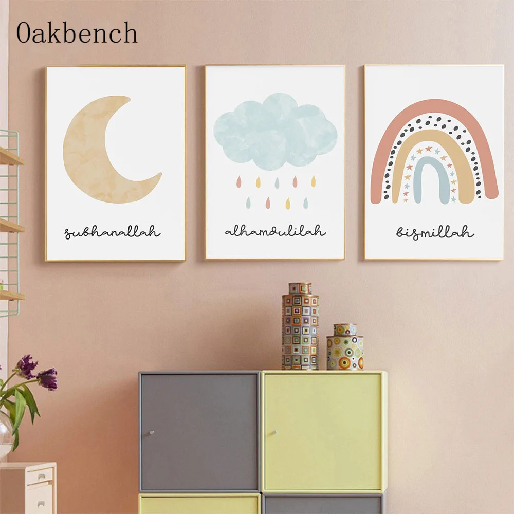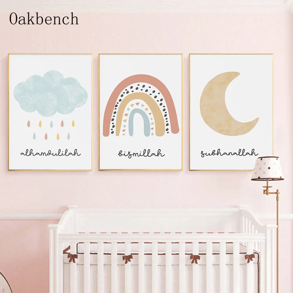 Радужная Луна настенный плакат принты исламские дети холст картина облако Художественная печать детская Настенная картина Декор детской комнаты