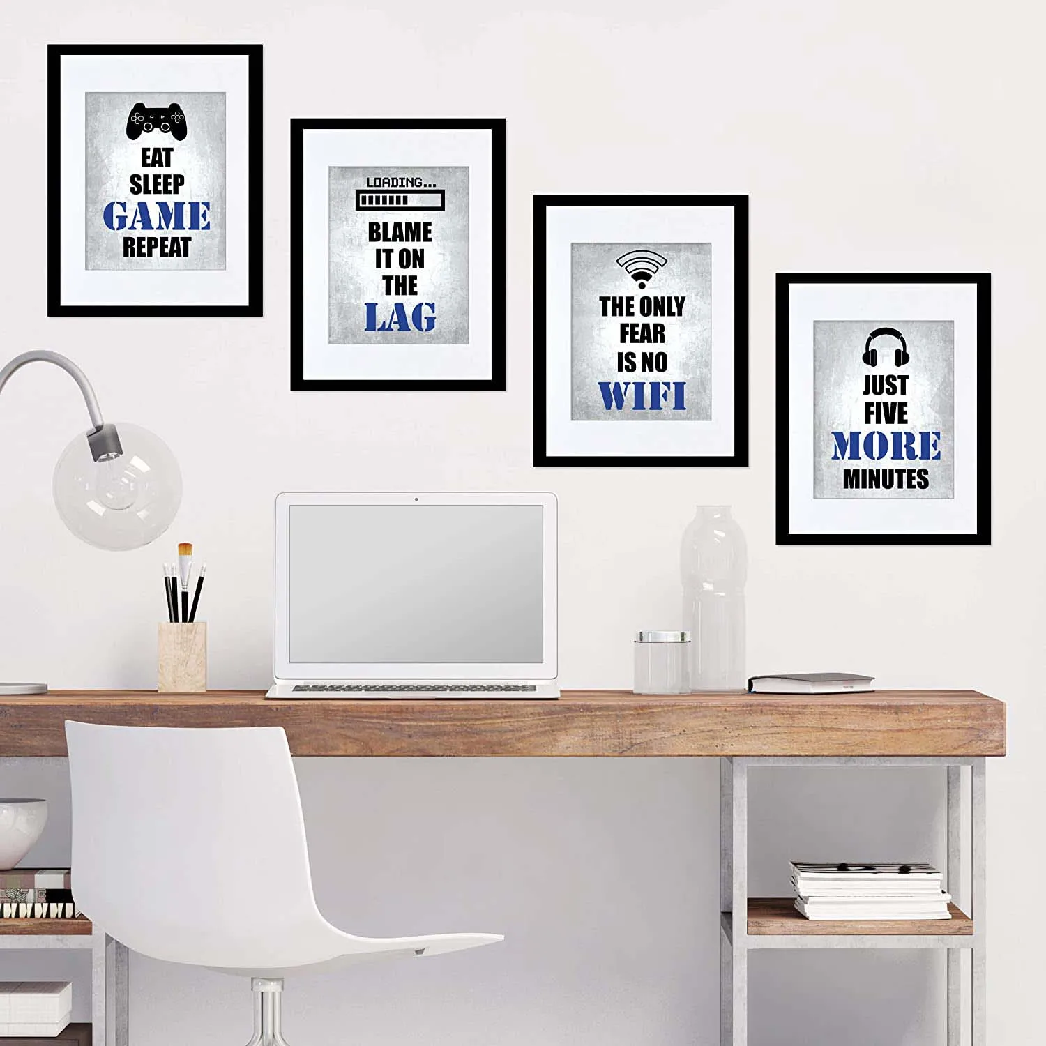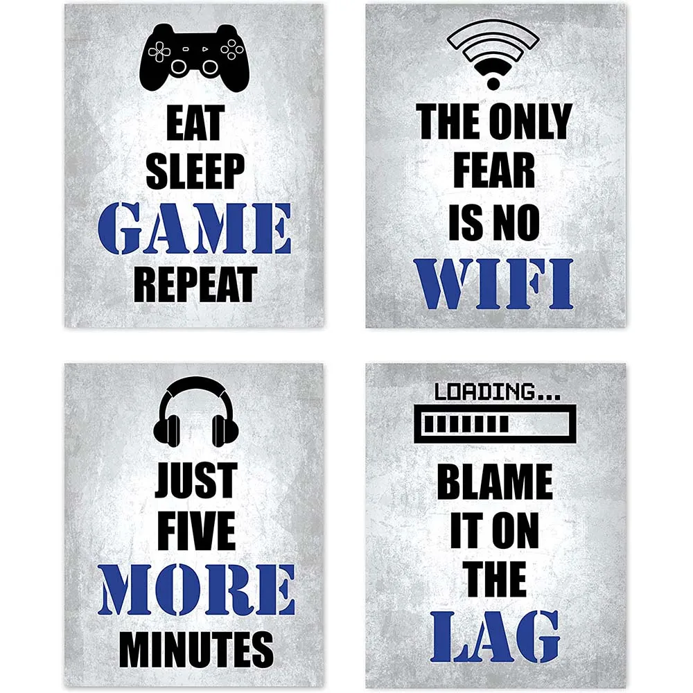 Настенные художественные постеры на холсте для видеоигр, Декор для дома, черные, белые и синие картины для игровой спальни, принты, декор для подростков D