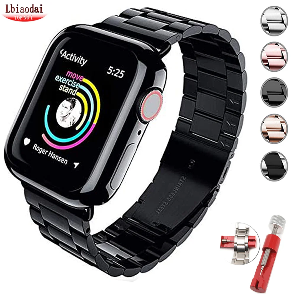 Ремешок из нержавеющей стали для Apple Watch 6 band 44 мм 40 мм 38 мм 42 мм, звеньевой браслет для наручных часов, аксессуары для iwatch series 5 4 3 SE